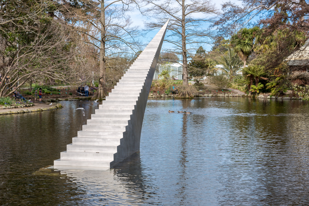 The vertiginous Diminish and Ascend has previously drawn great attention at Sculpture by the Sea, Sydney and Sculpture on the Gulf on Waiheke Island. Located in Kiosk Lake within the Botanic Gardens, the illusion of a staircase to the sky rising out of the lake took on its own resonance. McCracken is a highly skilled maker, specialising in working with metal, pushing its capabilities to realise formally sophisticated and tactile works.